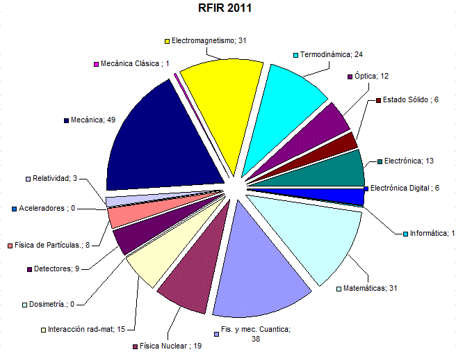 En el gráfico inferiores aparece representado los porcentajes del número de preguntas por materias de una de las convocatorias RFIR.